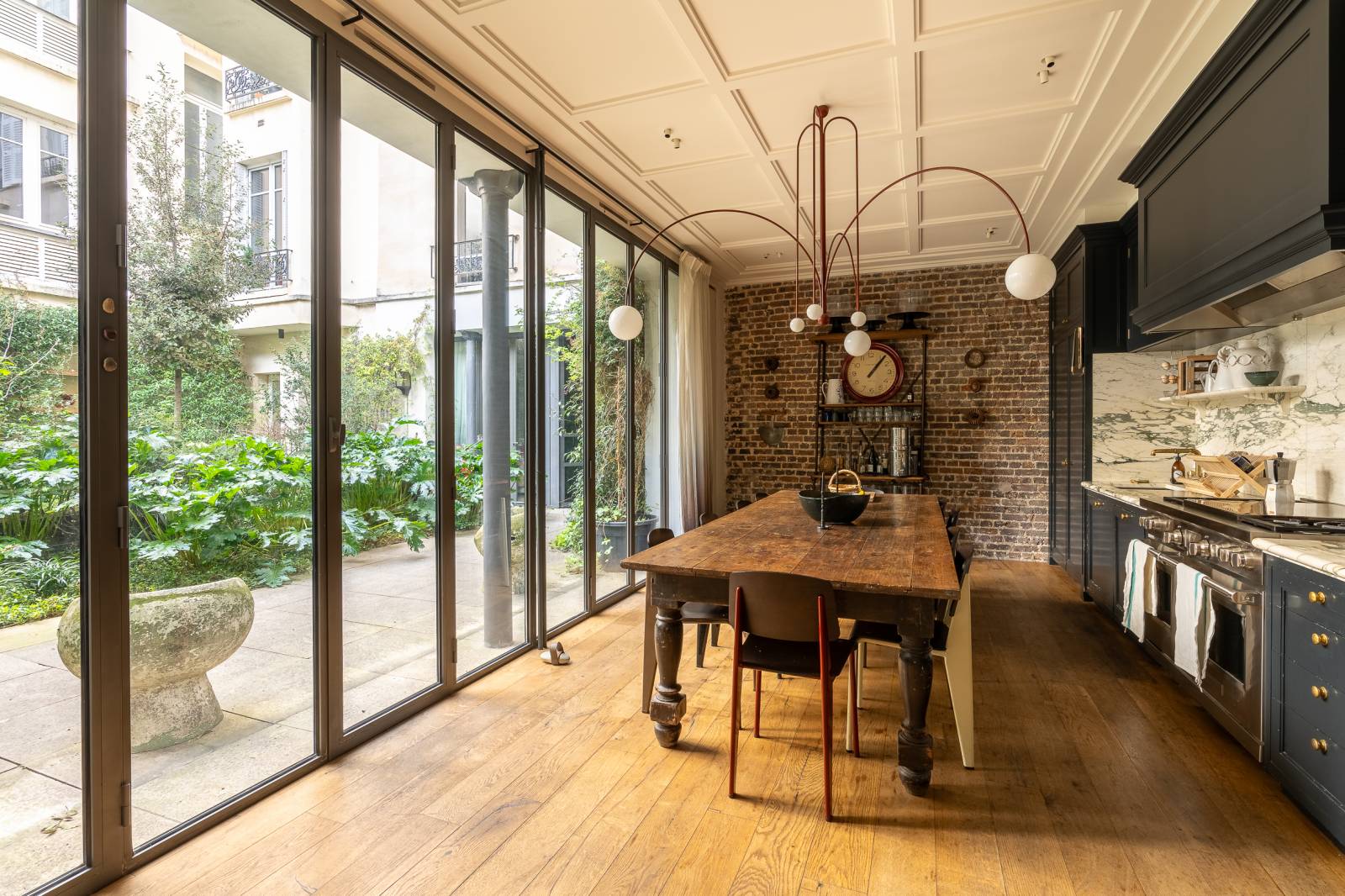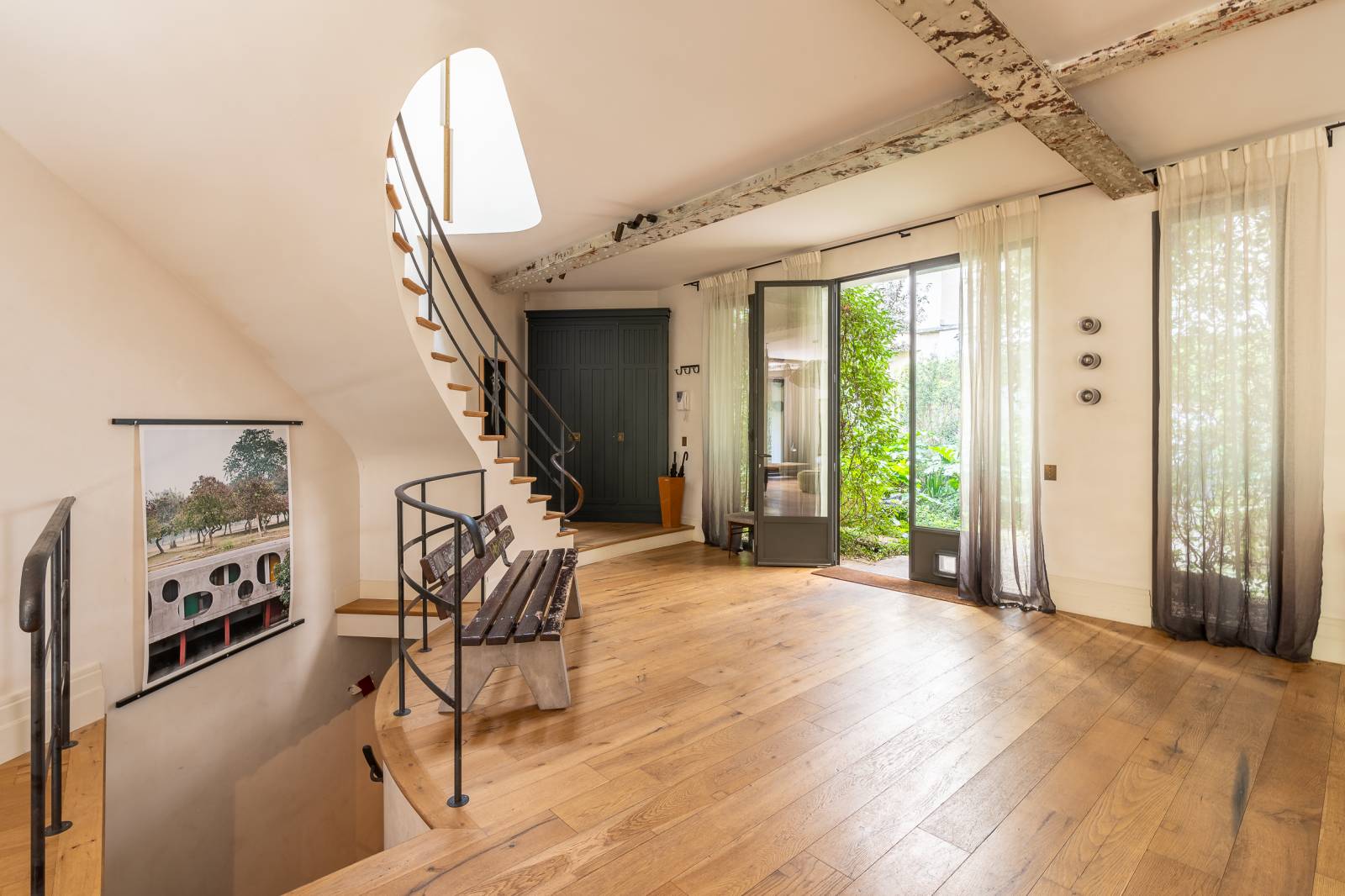 Nestled in the heart of Paris’ 6th arrondissement, near the Stanislas School and the peaceful Luxembourg Gardens, this exceptional property perfectly combines old-world charm with modern comfort. This loft-style home spans three levels, offering a unique living experience harmoniously connected to its private green spaces.